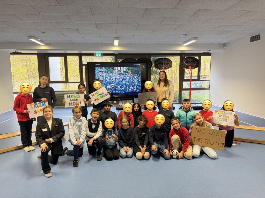 Die Schüler erstellen die Grundschul- und Gymnasialzeitung, die als Plattform für den Ideenaustausch, die Berichterstattung über Schulinitiativen sowie die Sensibilisierung für Nachhaltigkeit und soziale Themen dient. Durch das Recherchieren, Verfassen und Redigieren von Artikeln üben die Schüler ihre Meinungsfreiheit, ihr kritisches Denken und ihren verantwortungsvollen Journalismus und tragen so zu einer informierten und partizipativen Schulgemeinschaft im Einklang mit demokratischen Werten bei. Die Grundschulzeitung ist nur online verfügbar und wird zwischen unseren Eltern und Schülern geteilt, um den Papierverbrauch zu reduzieren. Die Zeitung der Sekundarstufe wird nur einmal pro Klasse gedruckt und geteilt.